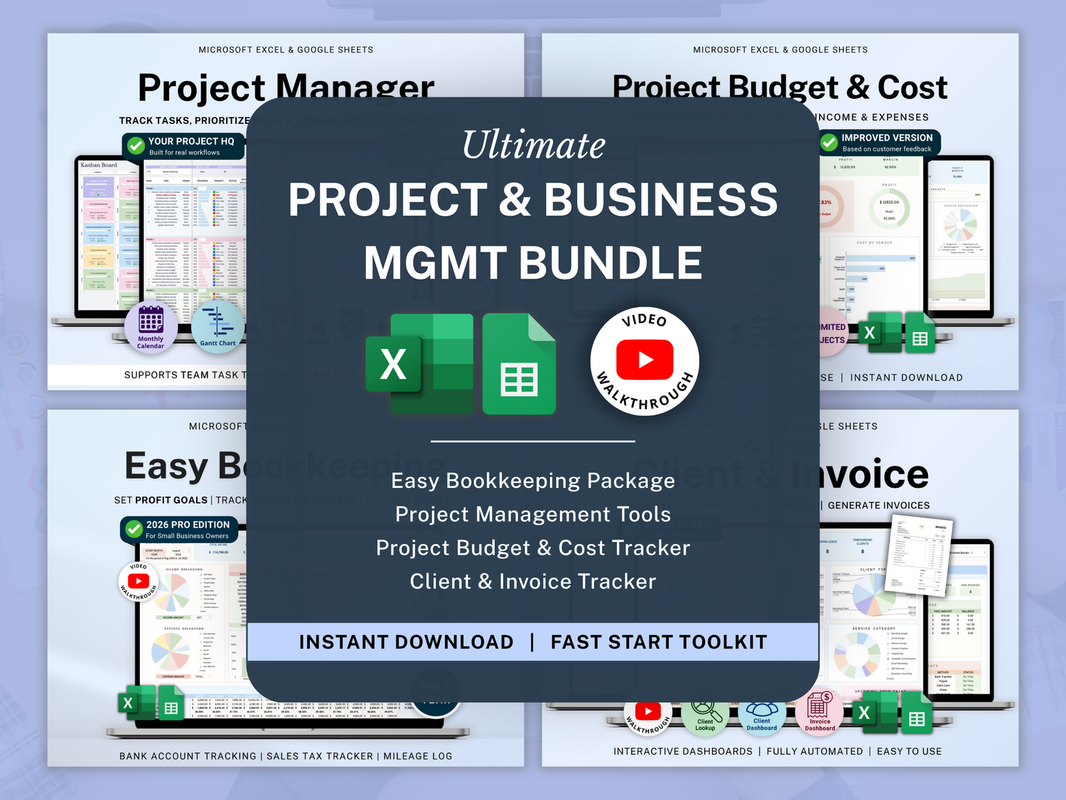 Explore powerful business spreadsheets to streamline bookkeeping, track projects, manage clients, and...