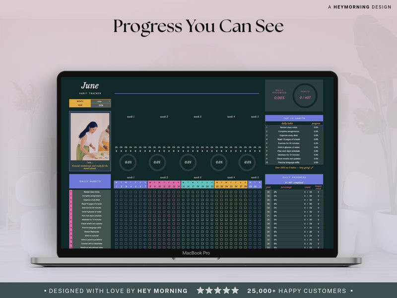Stay on top of your habits effortlessly with this easy-to-use Habit Tracker spreadsheet! Whether you’re building healthy routines, improving productivity, or focusing on self-care, this tracker keeps you organized with automatic progress updates, color-changing charts, and customizable habit settings. Track your daily, weekly, and monthly routines all in one place—no tech skills required. Simply set it up and start building consistency today. Stay focused, motivated, and turn small habits into lasting results with ease!