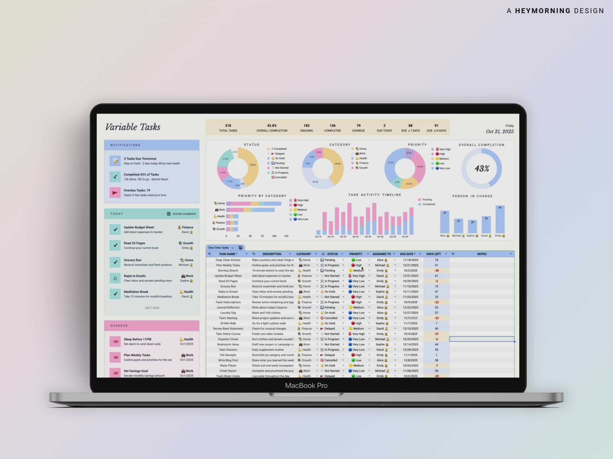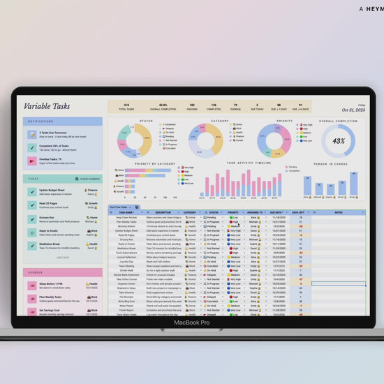 Our Task Tracker 2.0 Spreadsheet helps you plan smarter, stay consistent, and finally follow through — without juggling multiple tools.